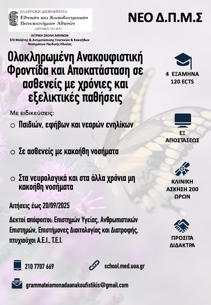 ΠΡΟΚΗΡΥΞΗ ΤΟΥ ΠΜΣ: "ΟΛΟΚΛΗΡΩΜΕΝΗ ΑΝΑΚΟΥΦΙΣΤΙΚΗ ΦΡΟΝΤΙΔΑ ΚΑΙ ΑΠΟΚΑΤΑΣΤΑΣΗ ΣΕ ΑΣΘΕΝΕΙΣ ΜΕ ΧΡΟΝΙΕΣ ΚΑΙ ΕΞΕΛΙΚΤIΚΕΣ ΠΑΘΗΣΕΙΣ"
